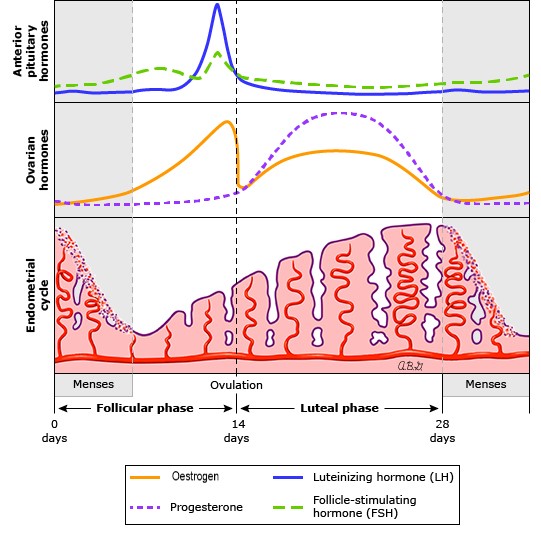 The exact causes of PMS have not been established for certain. However, PMS is strongly believed to be correlated to the changing hormonal levels during the menstrual cycle – more specifically, the post-ovulation drops in oestrogen and progesterone levels in the luteal phase of the cycle.