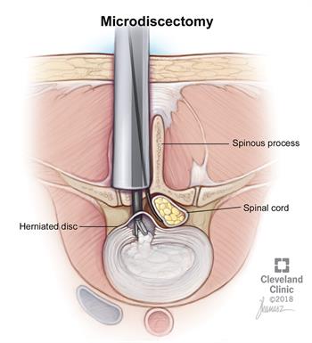 In extreme cases, particularly if there is loss of bladder/bowel control, surgery may be recommended to deal with conditions where other modes of treatment have failed. This may involve removal of spurs, microdisectomy (removal of a fragment of a herniated disc) or laminectomy (removal of the lamina part of a vertebra that is compressing the sciatic nerve). However, extra care should be taken as spinal surgery has a higher risk of causing other medical complications.