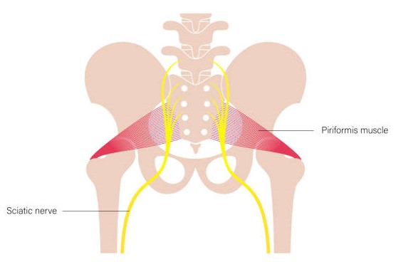 - piriformis syndrome – The piriformis muscle connects the lower part of the vertebral column to the femur (thighbone) and helps with hip rotation. Inflammation or spasming of this muscle can exert pressure on the sciatic nerve, thereby causing sciatica.