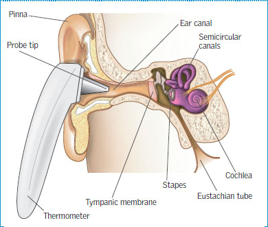- temporal artery thermometer – placed over the temporal artery at the side of the forehead